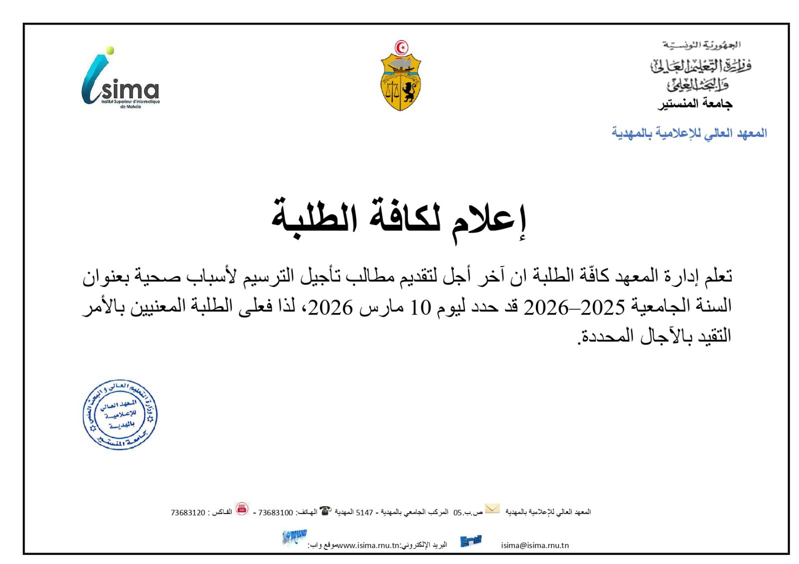 بلاغ حول تقديم مطالب تأجيل الترسيم لأسباب صحية