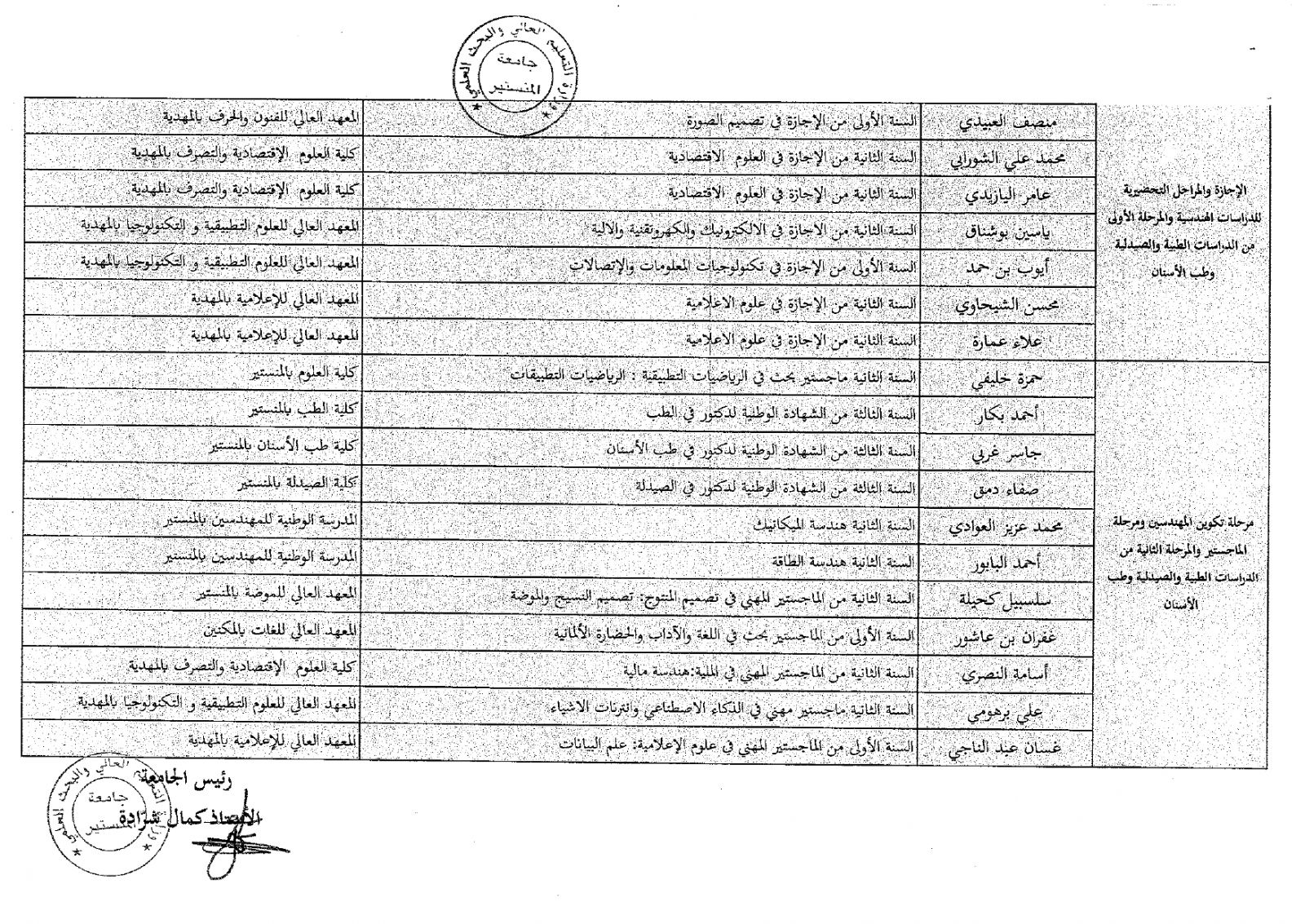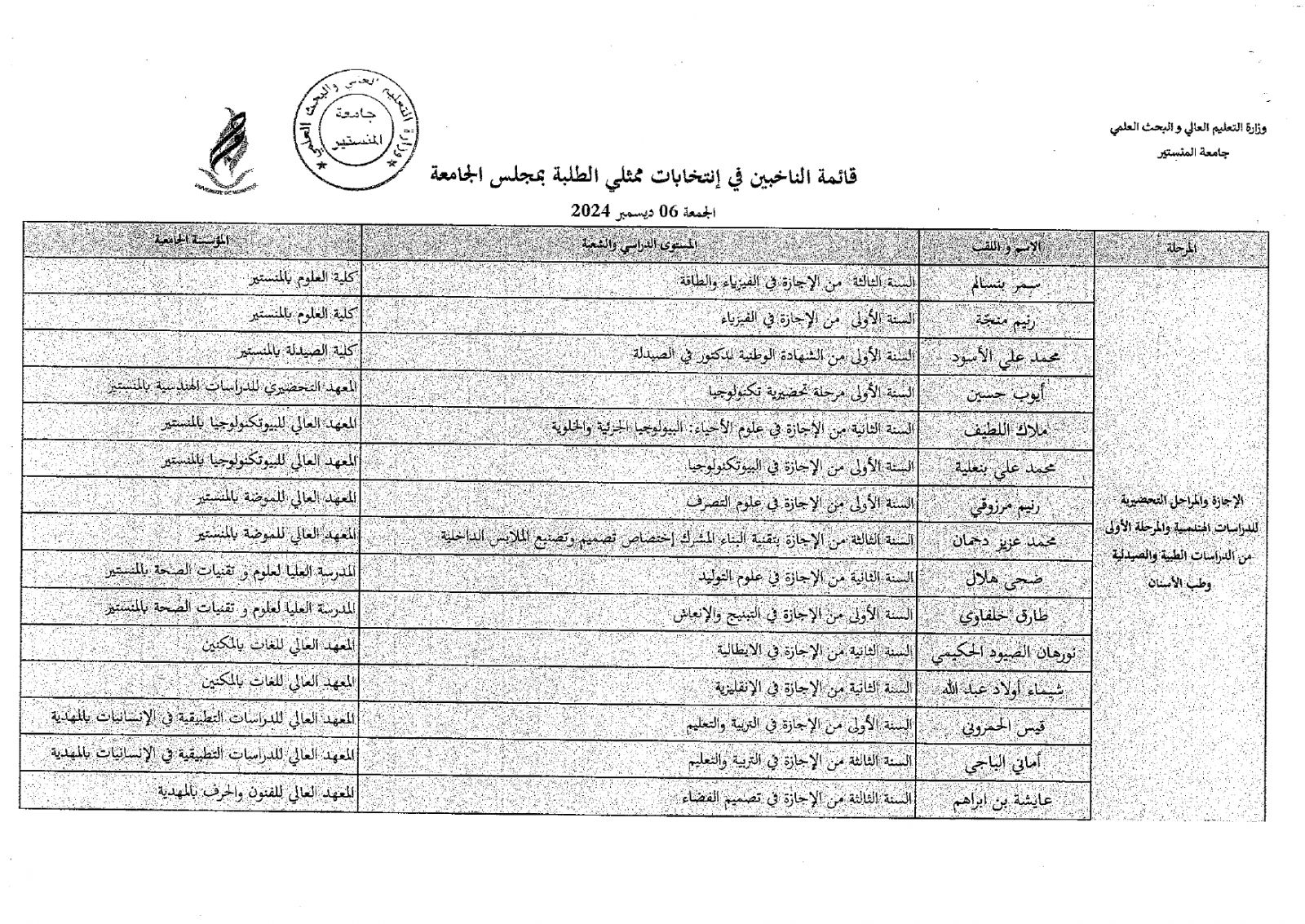 قائمة الناخبين في إنتخابات ممثلي الطلبة بمجلس جامعة المنستير