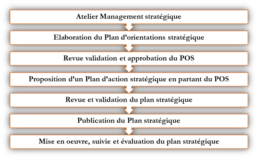 Chacun de 5 axes stratégiques est décliné en objectifs spécifiques avec des résultats attendus: