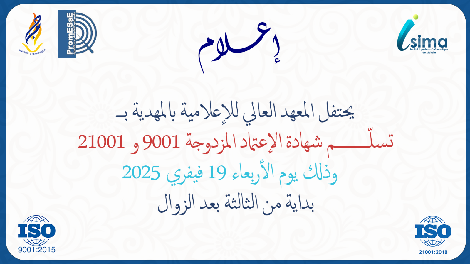 Charte de qualité d'accueil de l'ISIMA