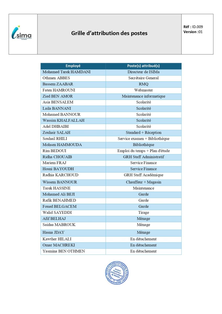Grille d’attribution des postes